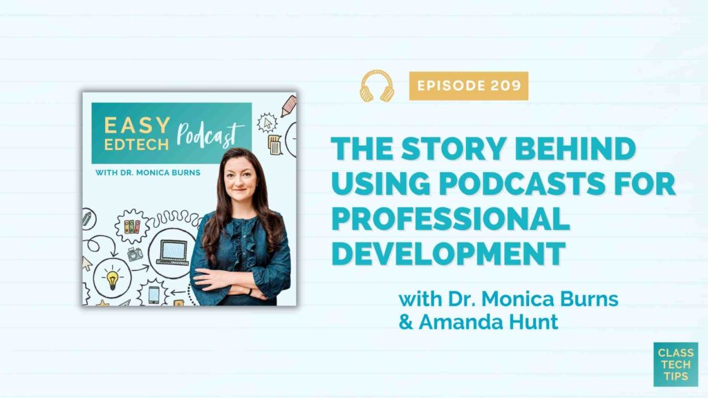 In this episode, Library Media Specialist Amanda Hunt joins to chat about how podcasts have transformed professional learning for educators. You’ll also hear how the flexibility of using podcasts for professional development not only saves time but can inspire educators to infuse EdTech in their classrooms.