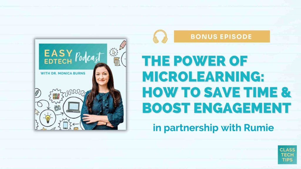 Today’s episode is titled “The Power of Microlearning: How to Save Time & Boost Engagement – Bonus Episode with Rumie” and it was so great having the chance to chat with Dr. Nancy Miller. Nancy and I talked about the concept of microlearning – what it is, how it works in a classroom setting, and why it might be the perfect choice for boosting engagement. If you’re new to the idea of microlearning, this episode is for you. Or if you’re a “microlearning pro” then you’ll want to hear all about Rumie, the platform we spotlight today, too.