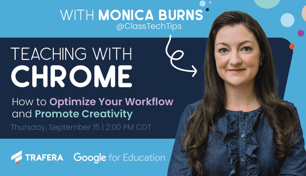 Sit down with Monica Burns (@ClassTechTips) and Trafera’s Josh Ratliff to talk about the possibilities in teaching and learning when the whole classroom is synced up on Chrome. We’ll explore how to refine your workflow, boost creativity, and manage a classroom of students with a variety of learning needs, all by using Chromebooks.