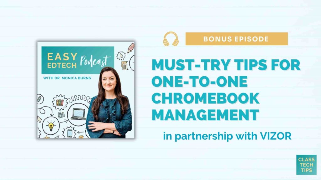 Today’s episode is titled Must-Try Tips for One-to-One Chromebook Management- Bonus Episode with VIZOR and it was so much fun chatting with Dean and Jeff. If you’re curious about how to manage Chromebooks, this episode has you covered. You’ll hear everything from tips for deploying Chromebooks and thinking about the device life cycle, to strategies for tackling repairs and communicating with families. Let’s dive into the episode.