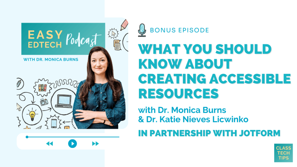 In this episode, I welcome back Dr. Katie Nieves Licwinko, Director of Technology, to the podcast to discuss the importance of creating accessible resources for students. You’ll also hear about common accessibility barriers and practical tips for improving accessibility for diverse learners using EdTech. If you’re looking to learn more about creating inclusive learning environments, this episode has you covered!