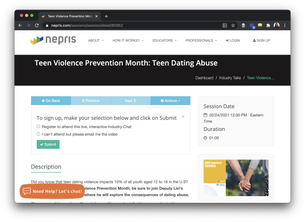 Next on the schedule for Nepris’ free Industry Chat on February 24th. This discussion addresses Teen Violence Prevention Month & Teen Dating Abuse.