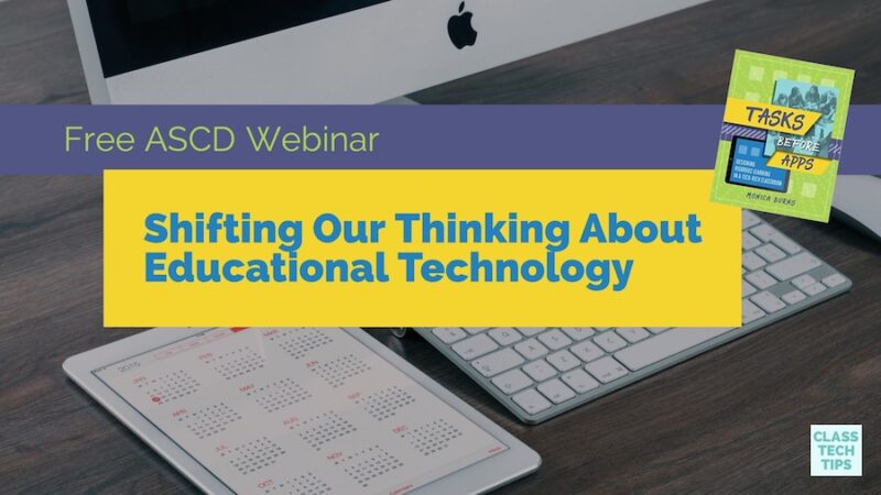 This year I’ve had the pleasure of working with ASCD to publish my new book Tasks Before Apps. I’m super excited to lead a special, free webinar for ASCD next week. Titled, “Shifting Our Thinking About Educational Technology: How to Place Tasks Before Apps,” this webinar will include lots of tips and strategies featured in the book as well as time for questions. You’ll find the information from the registration page below and the link to register at the bottom of this page. I hope you’ll join me for this special educational technology webinar!