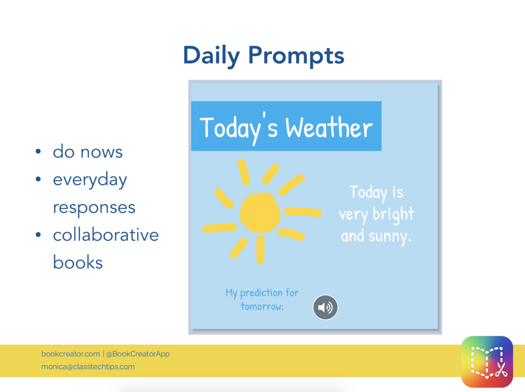 Do you use “do now” activities or exit slips in your classroom? Have students create a journal instead. They can collect the daily prompts you share with students in an ebook created with Book Creator.