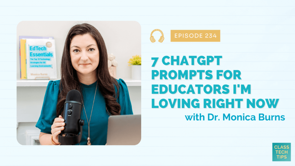 In this episode, I’m excited to spotlight seven favorite ChatGPT prompts for educators that have made a big difference in my workflow this year. We’ll explore super helpful ways to supercharge your productivity and ignite your classroom creativity with these chatbot favorites! From requesting unexpected responses to adding emojis, this list of prompts has you covered.