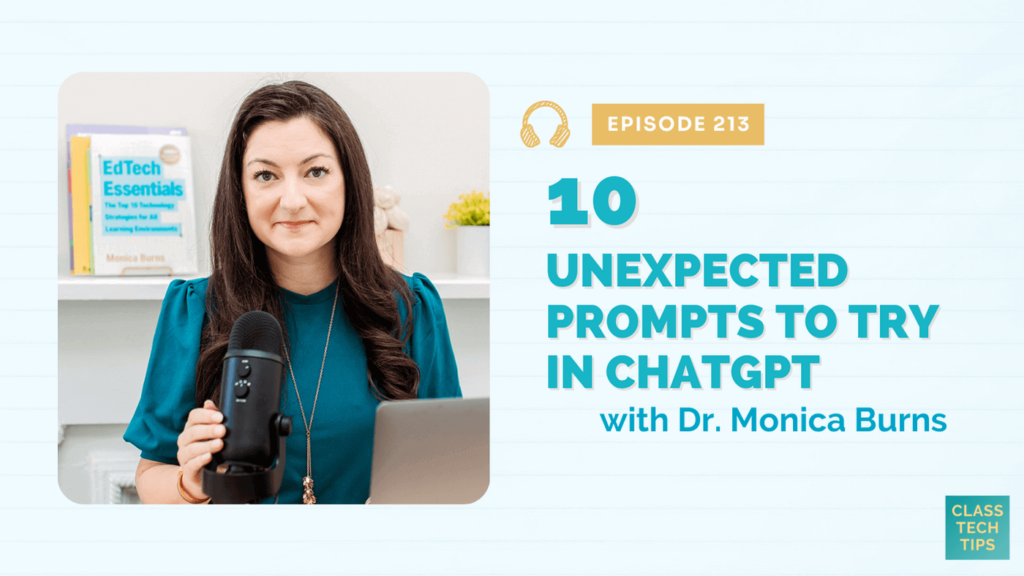 This episode is sponsored by my new free ebook on ChatGPT! It’s called “60+ Must-Try ChatGPT Prompts for Teachers” and it’s full of ideas that will save you oodles of time. To grab the free ebook, go to ClassTechTips.com/ChatGPTbook.