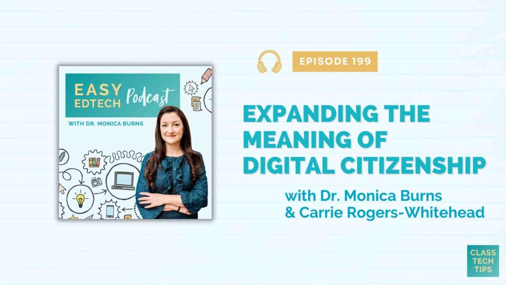In this episode, educator and author Carrie Rogers-Whitehead joins to discuss the meaning of digital citizenship, including how to embed this practice across diverse learning environments and subject areas. You’ll hear how her book Deepening Digital Citizenship, with co-author Dr. Vanessa Monterosa, promotes equitable access to all students and guides the process of crafting inclusive policies to promote digital citizenship systemwide.