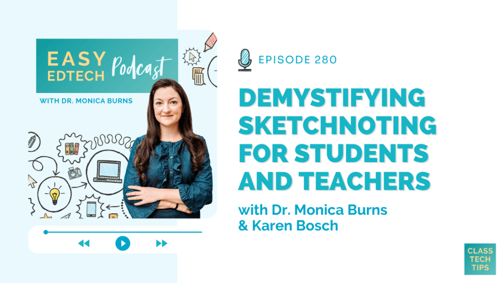 In this episode, I’m joined by Apple Distinguished Educator, speaker, and trainer Karen Bosch, who takes us on an exploration of sketchnoting. Karen shares how this powerful visual notetaking method combines drawings and text to enhance focus and retention for learners of all ages. You’ll hear Karen’s expert advice, her favorite digital tools, and plenty of tips for demystifying sketchnoting for students and teachers, too.