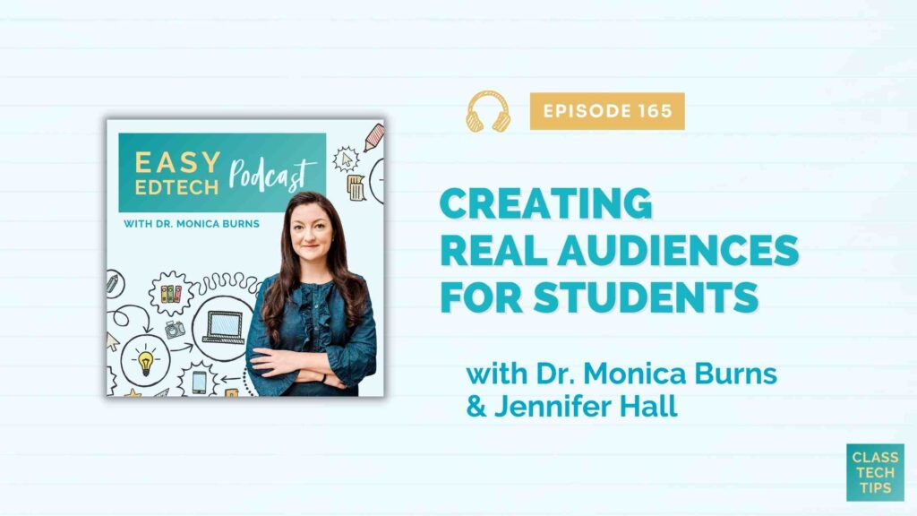 This week’s episode is titled: “Creating Real Audiences for Students with Jennifer Hall.” I’m excited for you to listen to our conversation around audiences and giving students an audience for their work. During the TCEA conference in February, Jennifer and I participated in a panel conversation where we talked about all things technology integration. And I wanted to bring Jennfer on the podcast to share more ideas around audience.