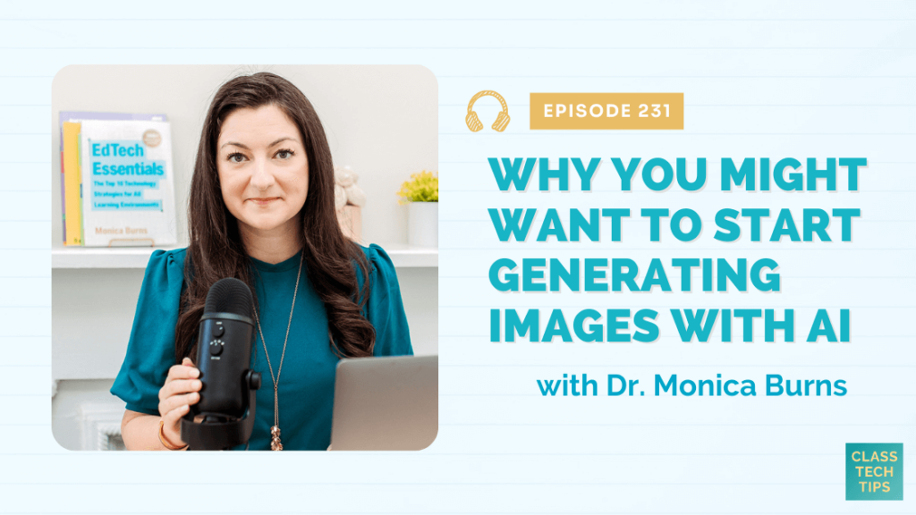 In this episode, I share some tips for educators who might want to try using AI to generate images this school year. You’ll hear why it might be easier to make your own images the next time you need to find an image. Instead of a Google image search, explore how to use AI to generate images for your next lesson.