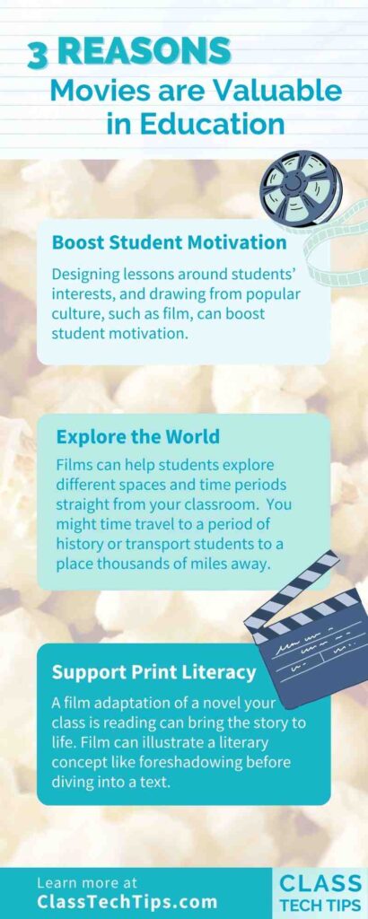There are many reasons why movies are valuable in education, from supporting literacy instruction by bringing texts to life to helping students understand what life was like during different periods of history. Here are just a few reasons why you want to use movies in your curriculum.