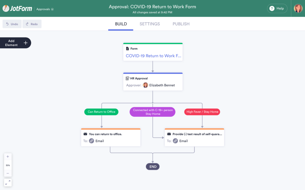 As I mentioned above, and as you can see in the video, you can send approvers automated emails for every new task they receive when you set up the Approval. Each form respondents will receive personalized emails if their requests are approved. This way you don’t have to worry about following up with each person. Want to use JotForm Approvals for a task like adding or dropping a course or elective? You can set up email confirmations for students who fill out the form.