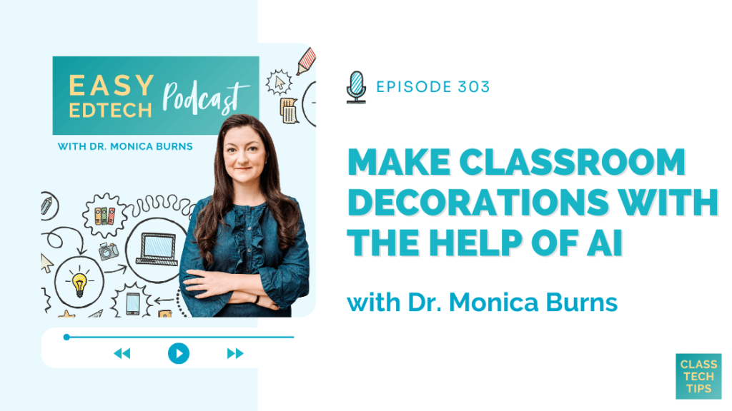 In this episode, you’ll learn how to use AI-powered tools to make classroom decorations, from interactive welcome signs to musical bulletin boards. You’ll also hear how to brainstorm innovative ideas for your classroom decorations by leveraging the power of chatbots. If you want to transform your classroom into a vibrant and engaging learning space with the help of AI, this episode is for you!