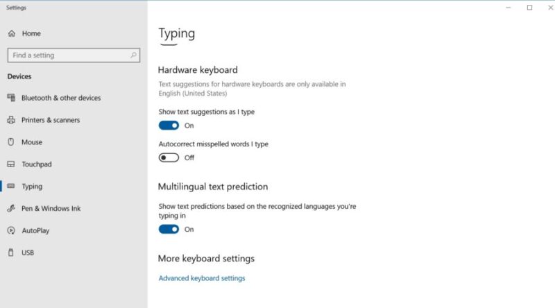 Windows 10 also has built-in Word Prediction. Known as “Text Suggestions,” this feature will predict the next word a student will add to their sentence so they can add it to their writing. Word Prediction is a new feature so you might not see it on your device. All you have to do is update to the Windows 10 April 2018 update.