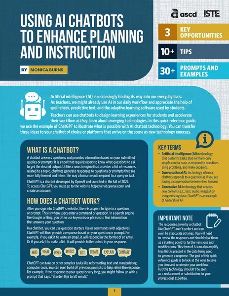 An overview of how teachers can use AI chatbots like ChatGPT to design learning experiences and accelerate their workflow, including advice for how to incorporate chatbots into their planning and instruction